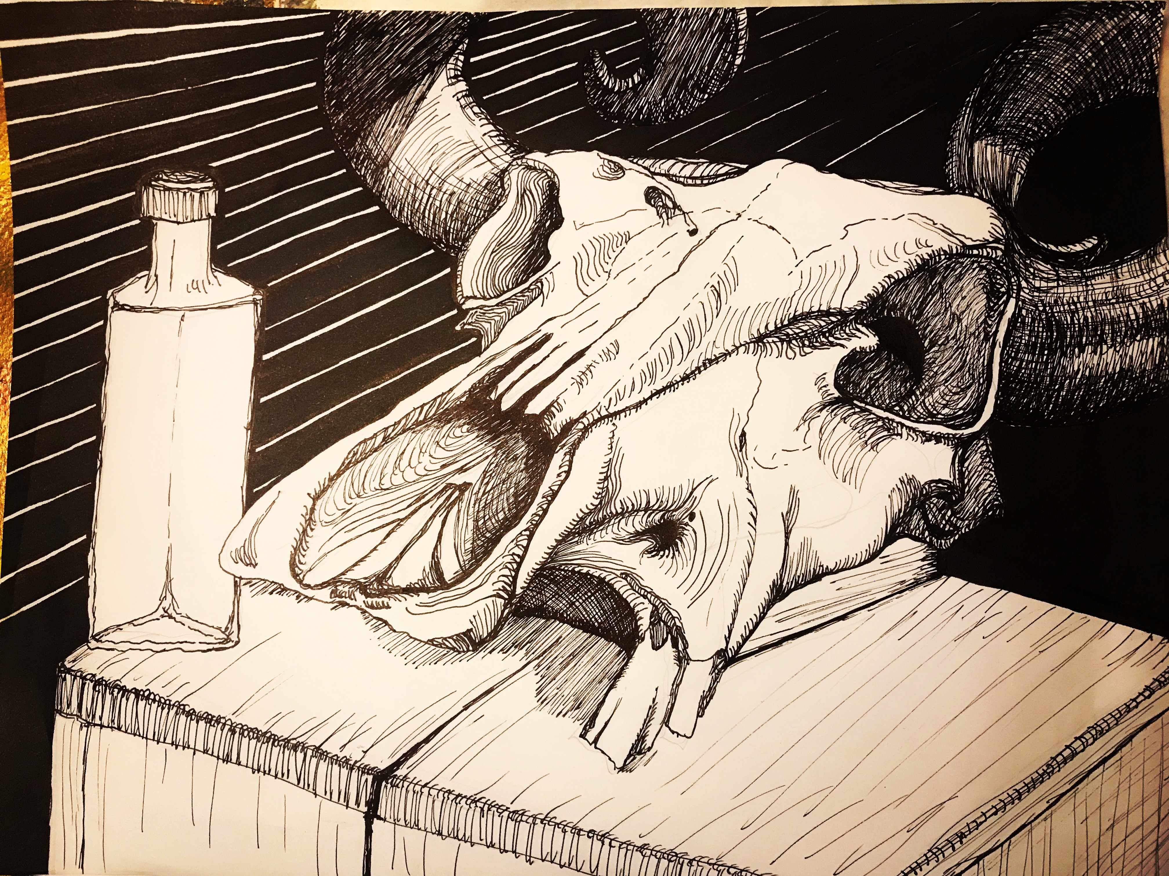 So did a little scribble here, some lines there, and after an hour, I had the entire image complete, minus filling in the solid black using a regular Sharpie when I arrived home.